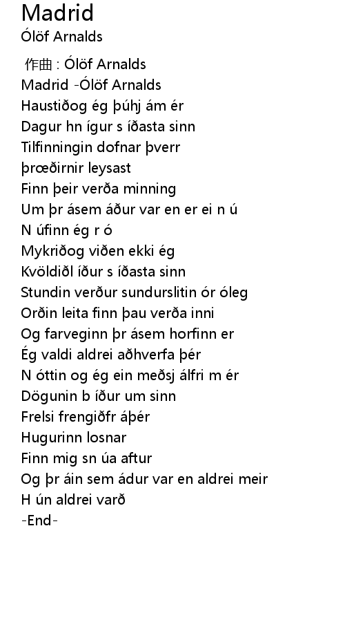 | [00:00.573] | Madrid Ó l f Arnalds |