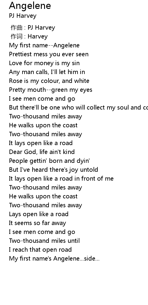 | [00:00.00] | 作曲 : PJ Harvey |