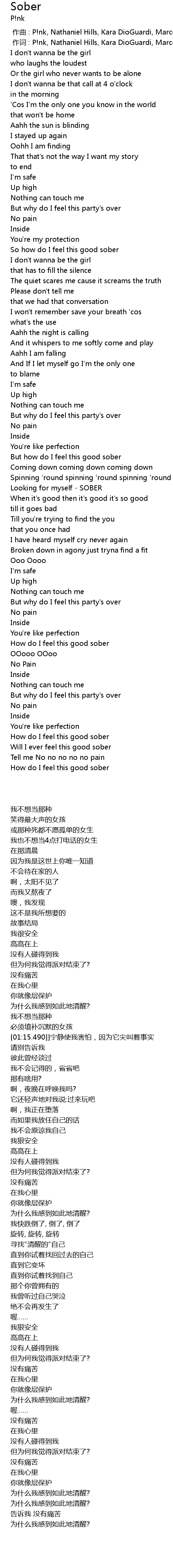 | [00:01.00] | 作词 : P!nk, Nathaniel Hills, Kara DioGuardi, Marcella Araica |