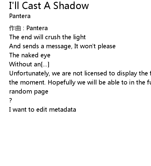 | 歌曲 | I'll Cast A Shadow |