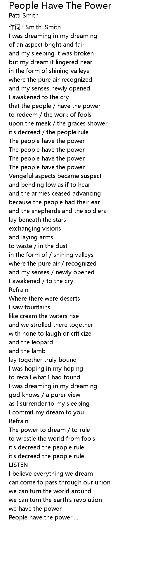 | 歌曲 | People Have The Power |