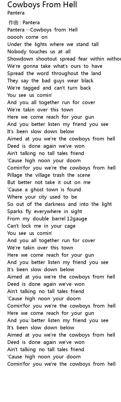 | [03:39.73] | Comin'for you we're the cowboys from hell |