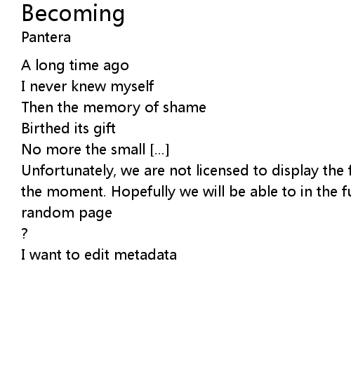 | Unfortunately, we are not licensed to display the full lyrics for this song at the moment. Hopefully we will be able to in the future. Until then, how about a | |