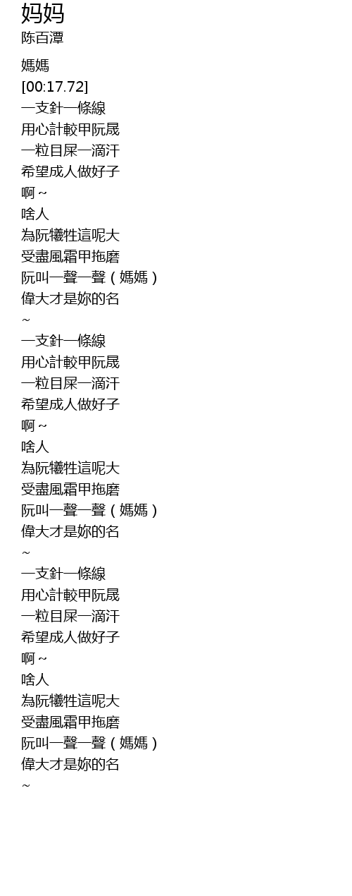 | [03:25.79] | 阮叫一聲一聲(媽媽) |