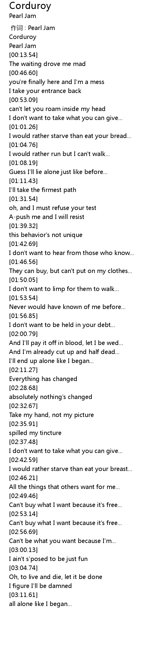 | [00:00.00] | 作词 : Pearl Jam |