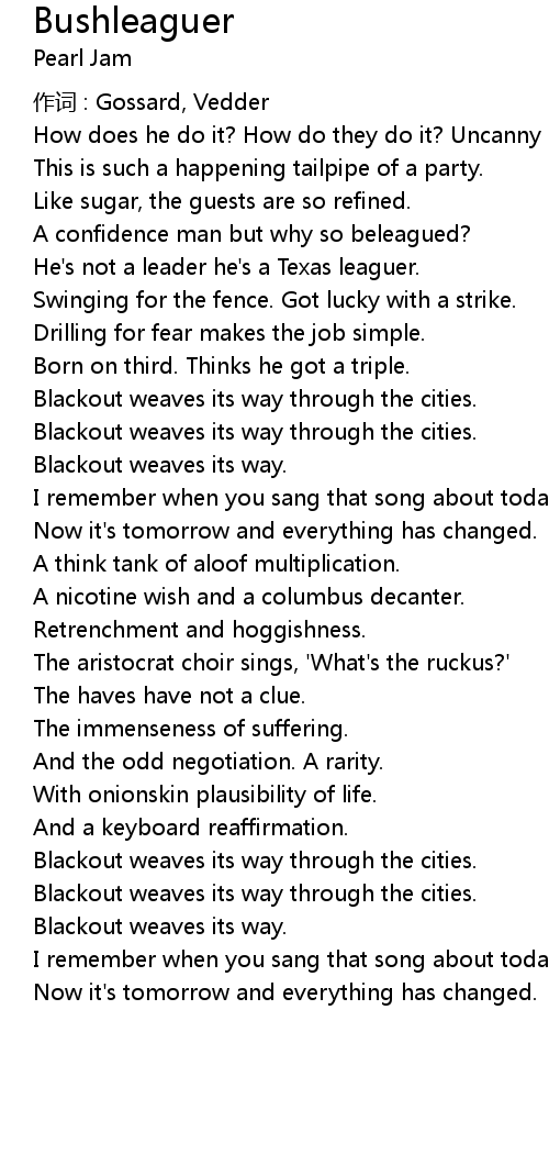 | 歌曲 | Bushleaguer |