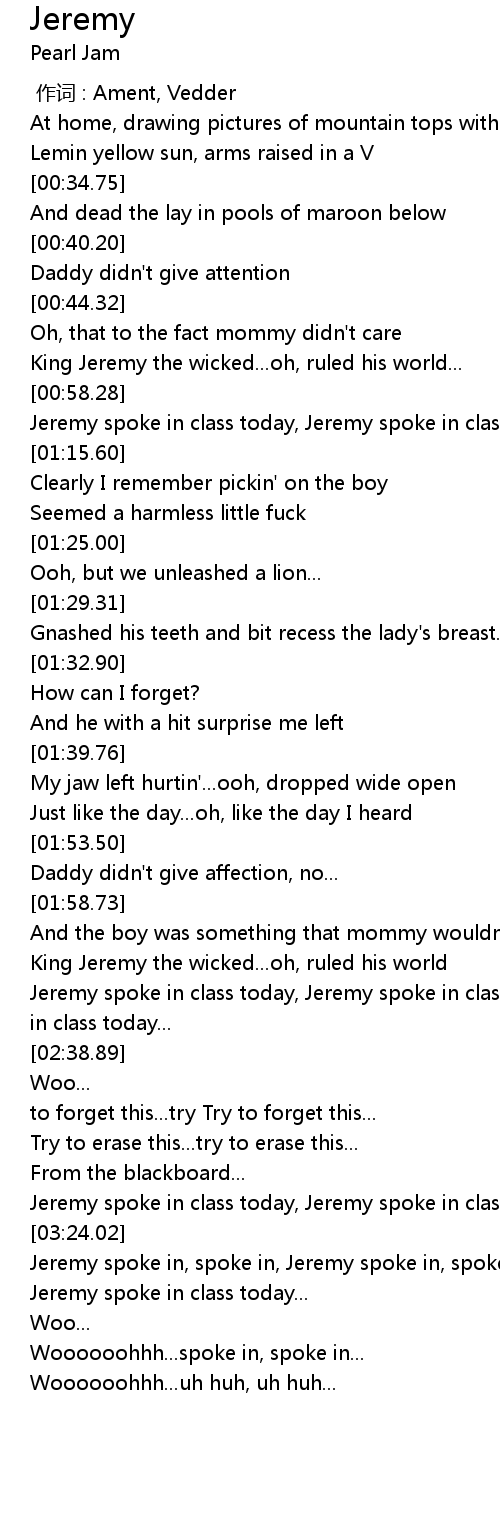 | [02:12.09] | Jeremy spoke in class today, Jeremy spoke in class today, Jeremy spoke in class today... |