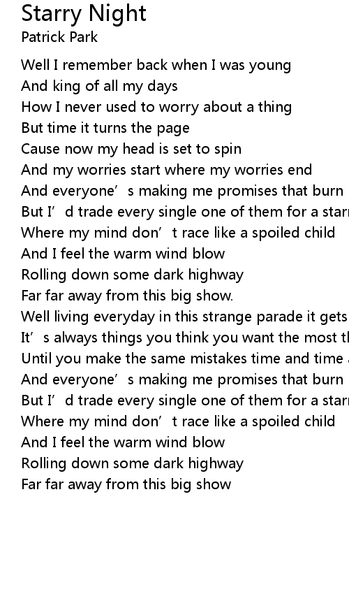 | 歌曲 | Starry Night |