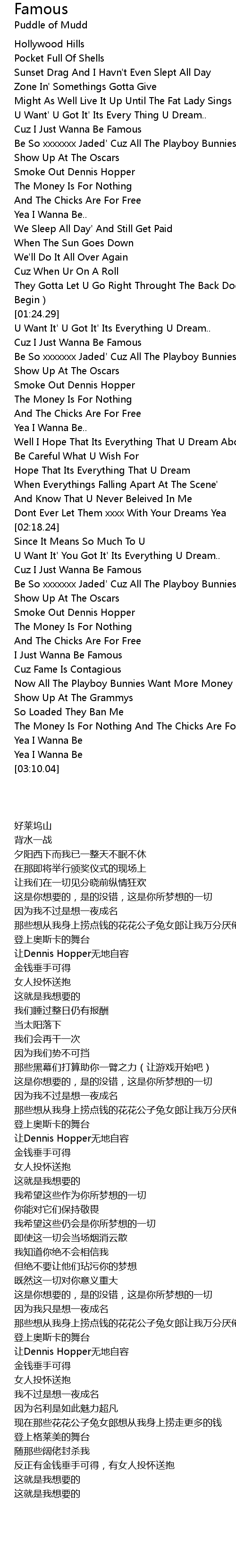 | [02:28.41] | Cuz I Just Wanna Be Famous |