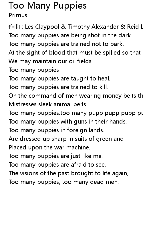 | 歌曲 | Too Many Puppies |