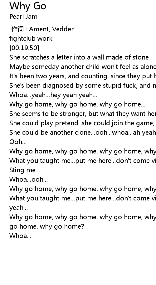 | [02:57.50] | Why go home, why go home, why go home, why go home, why go home, why go home, why go home? |