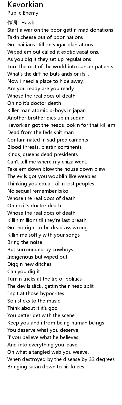 | 歌曲 | Kevorkian |