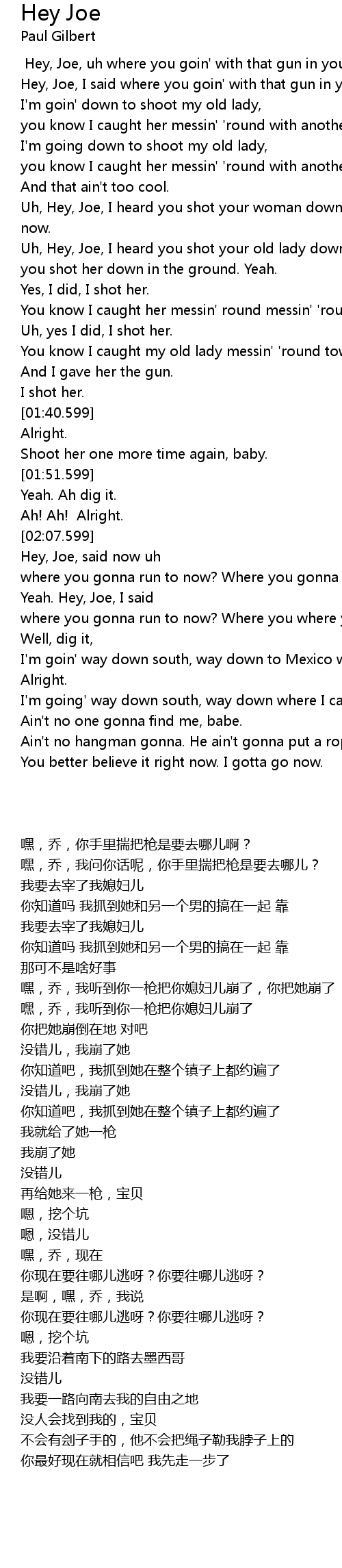 Hey, Joe, I said where you goin' with that gun in your hand? Alright. |