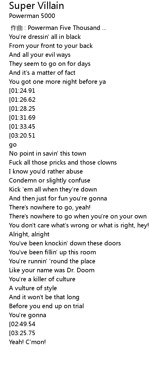 | [01:35.34][01:28.25][00:52.95][00:45.89] | You wanna live like a super villain |