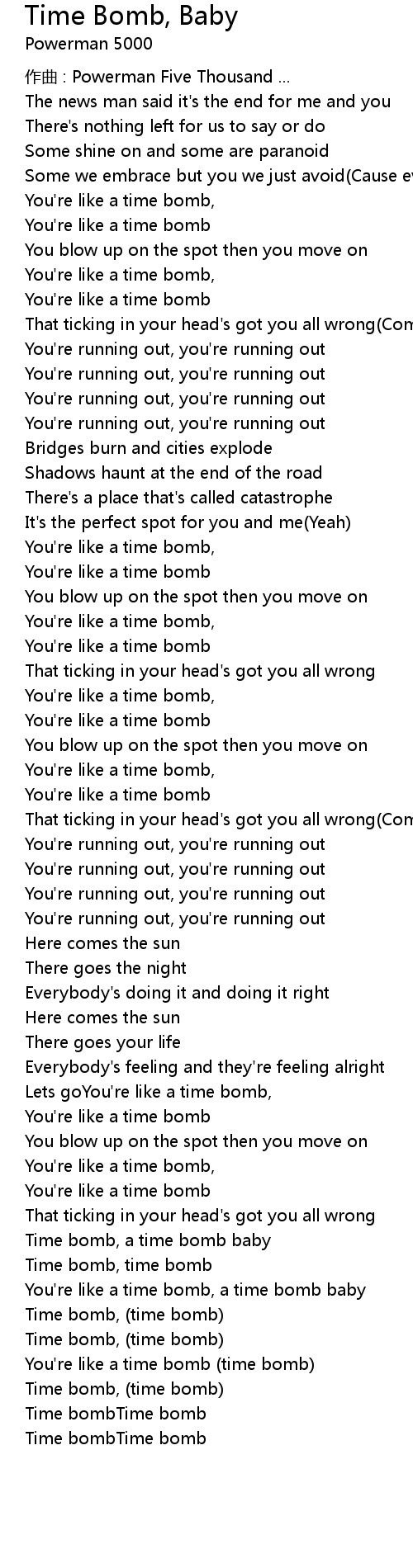 | 歌曲 | Time Bomb, Baby |