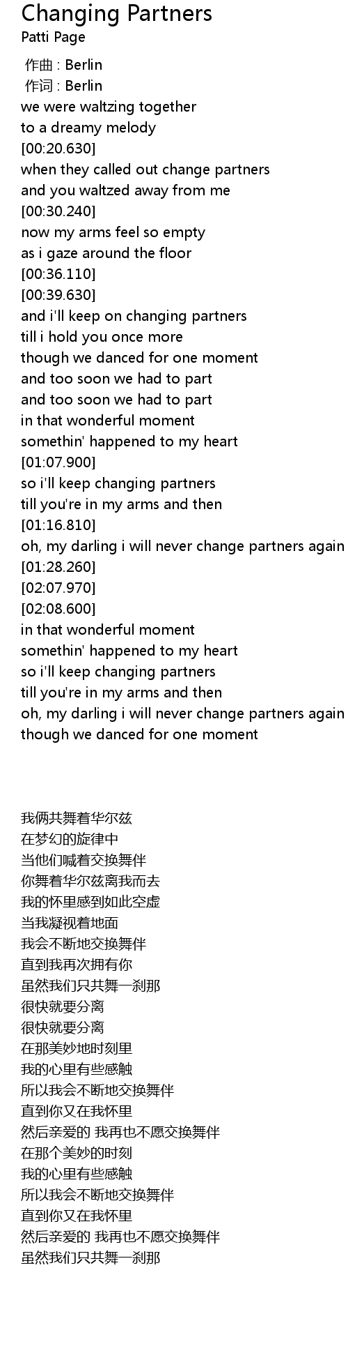 | [00:39.950] | and i' ll keep on changing partners |