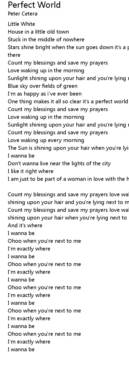 One thing makes it all so clear it's a perfect world as long as you're there |