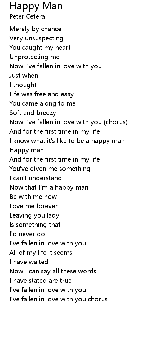 Now that I'm a happy man |