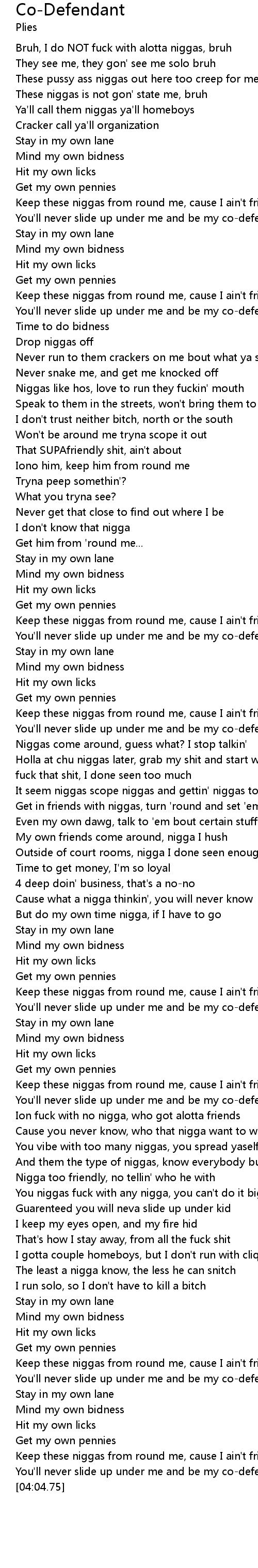 [02:59.20] Ion fuck with no nigga, who got alotta friends