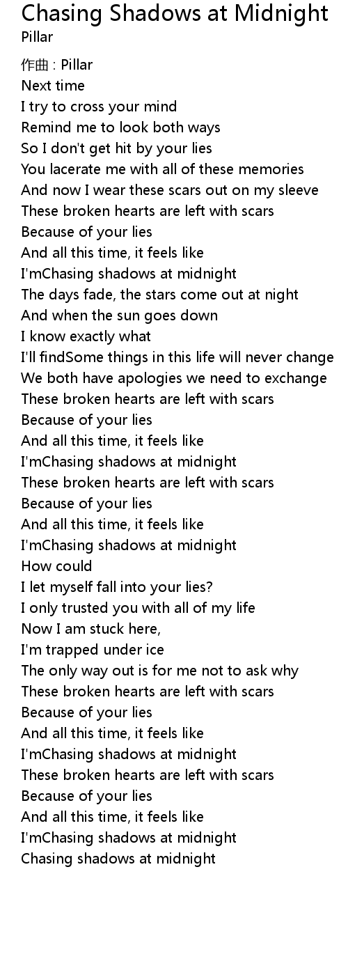 | 歌曲 | Chasing Shadows at Midnight |