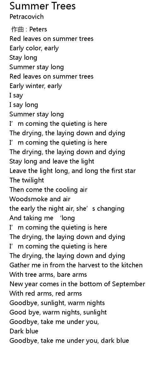 | 歌曲 | Summer Trees |