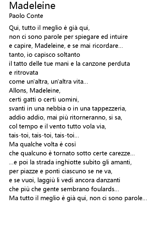 | e capire, Madeleine, e se mai ricordare | |