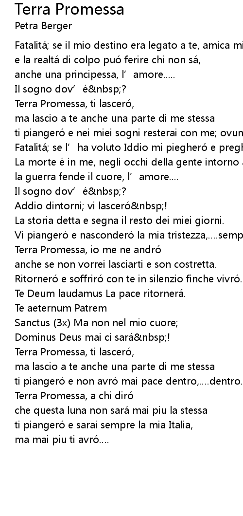 | Ritorneró e soffriró con te in silenzio finche vivró. | |