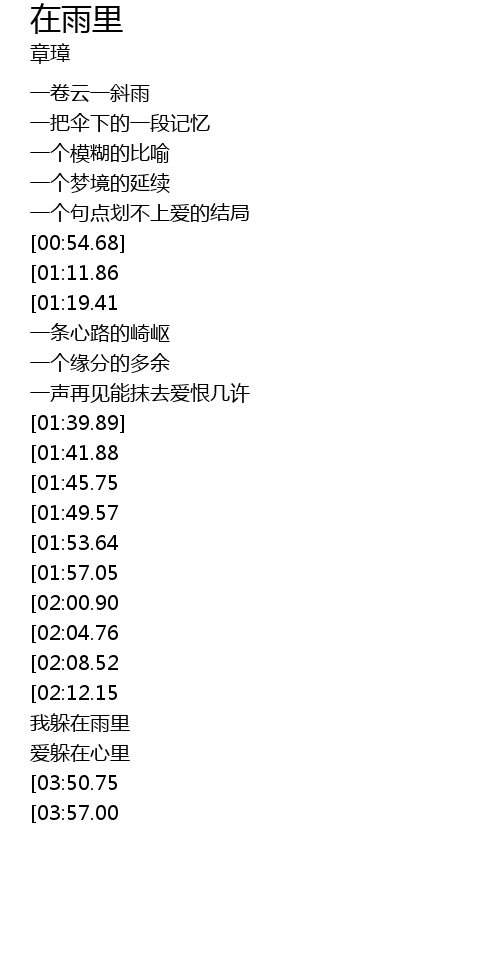 | [02:43.17][01:41.88] | 我躲在雨里来来去去 |
