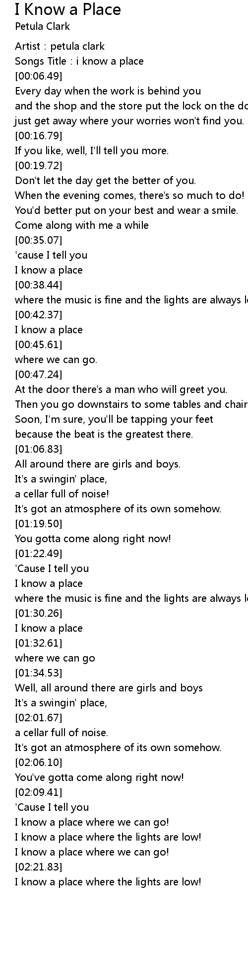 | [00:39.31] | where the music is fine and the lights are always low! |