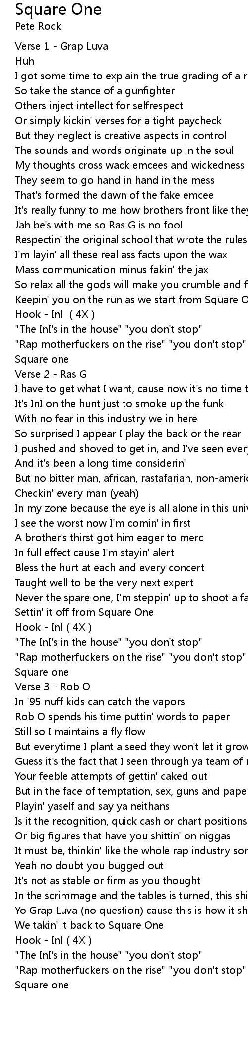 | [01:03.18] | Keepin' you on the run as we start from Square One |