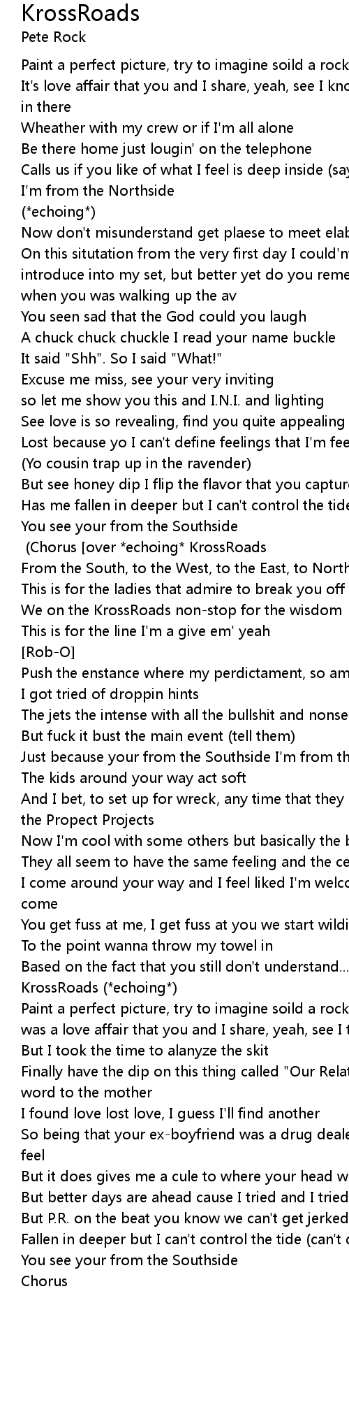 [Pete Rock] (Chorus [over *echoing* KrossRoads]) |