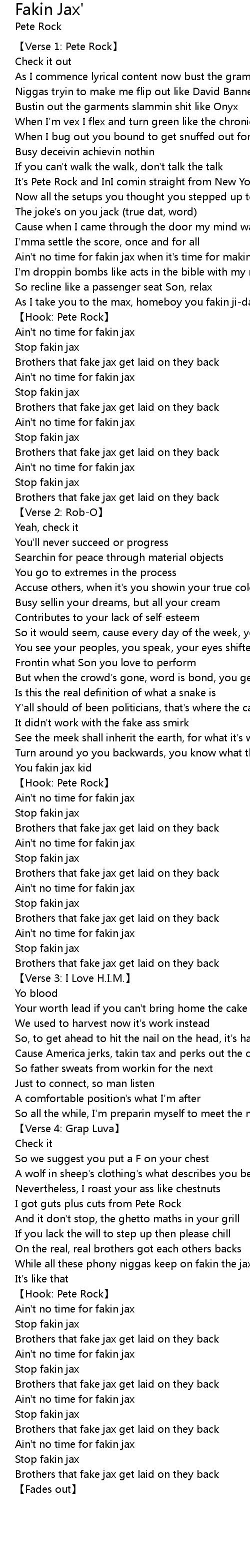 | [03:26.48] | Ain't no time for fakin jax |