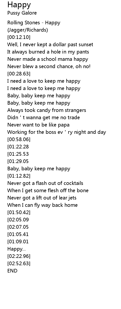 | [01:58.27][01:29.05] | Baby, baby keep me happy |