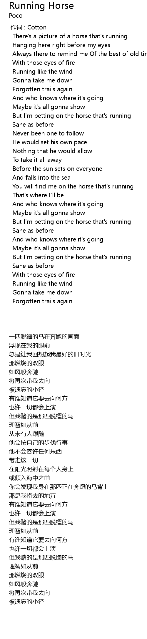 | [02:22.32] | 但我赌的是那匹脱缰的马 |