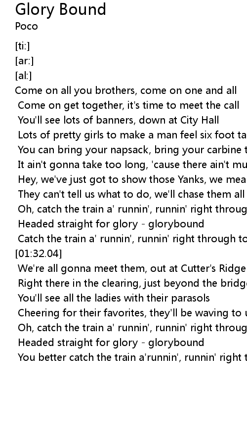 Catch the train a' runnin', runnin' right through town glorybound |