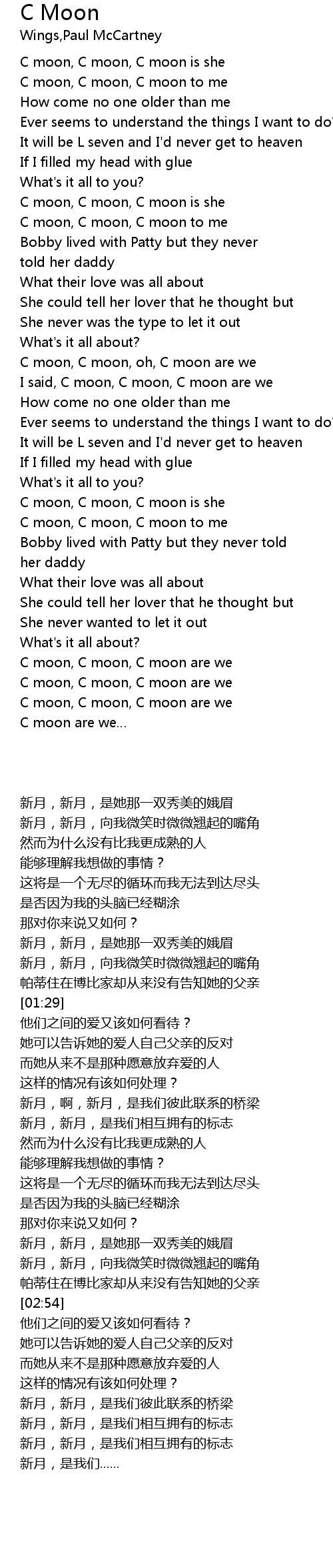 | [01:46] | C moon, C moon, oh, C moon are we |