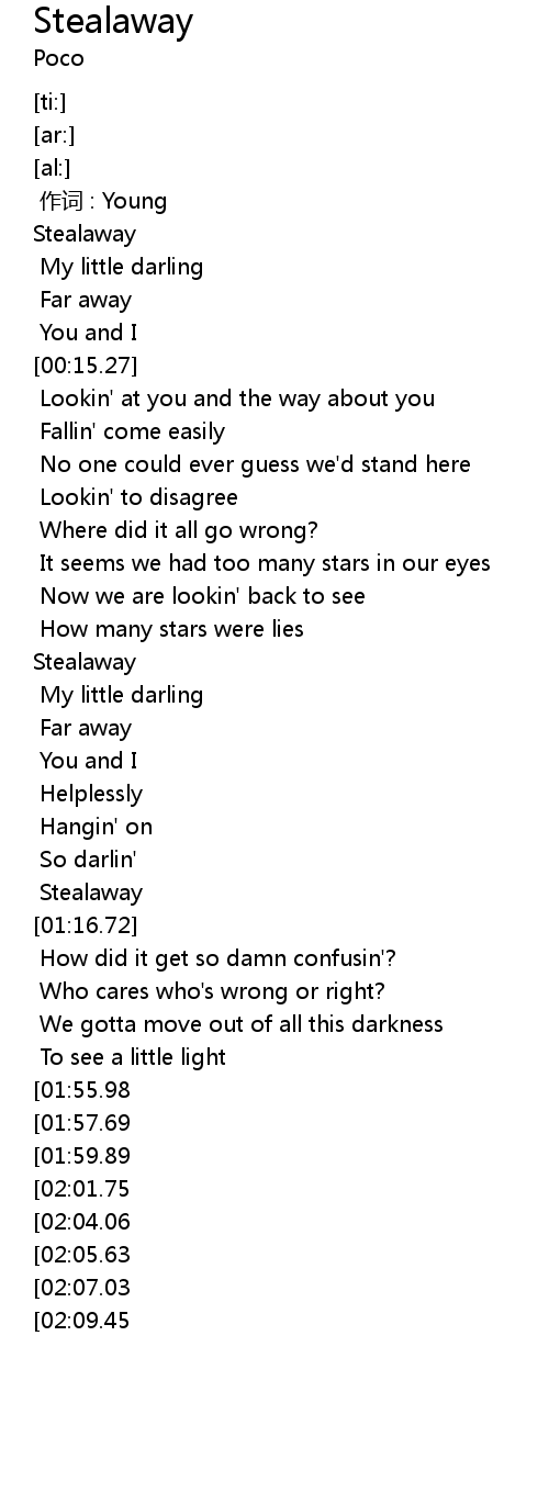 | [02:25.46][02:09.45] | Stealaway |