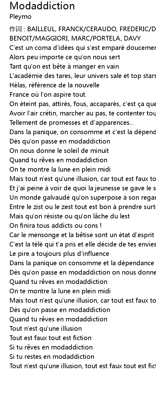 | Mais tout n' est qu' une illusion, car tout est faux tout est fiction | |