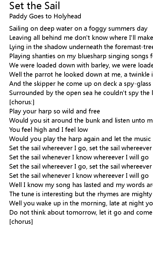 | Set the sail whereever I go, set the sail whereever I come from | |