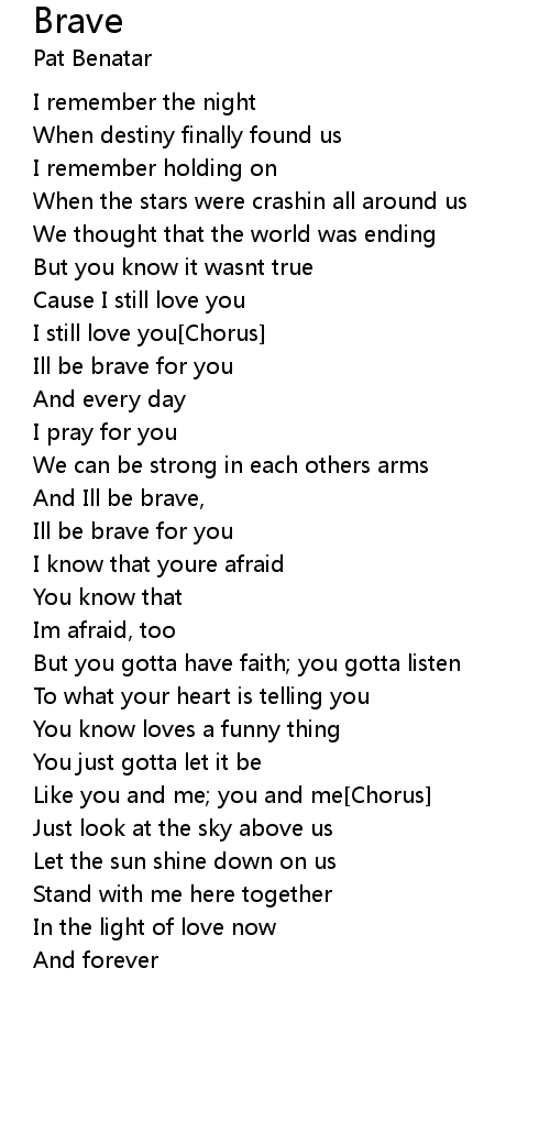 And Ill be brave,