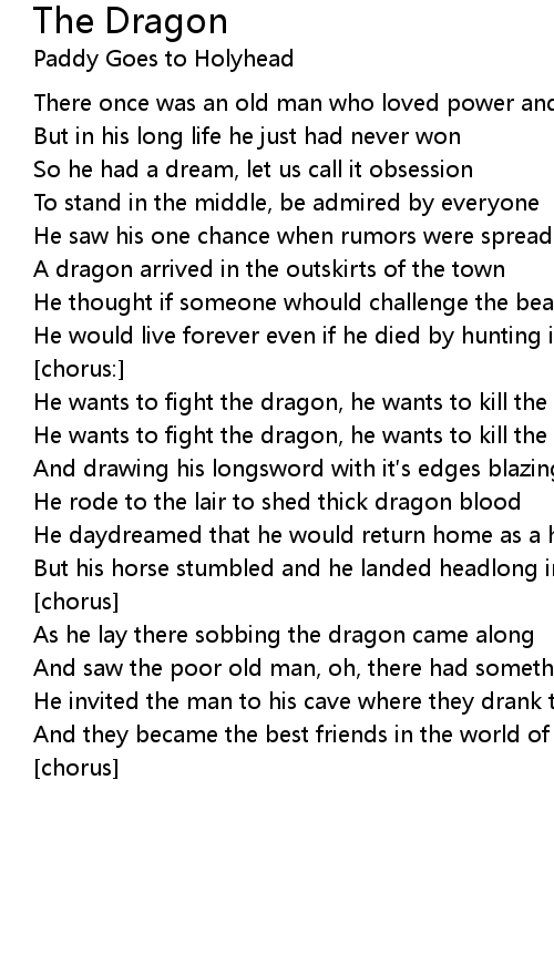 | He wants to fight the dragon, he wants to kill the beast | |