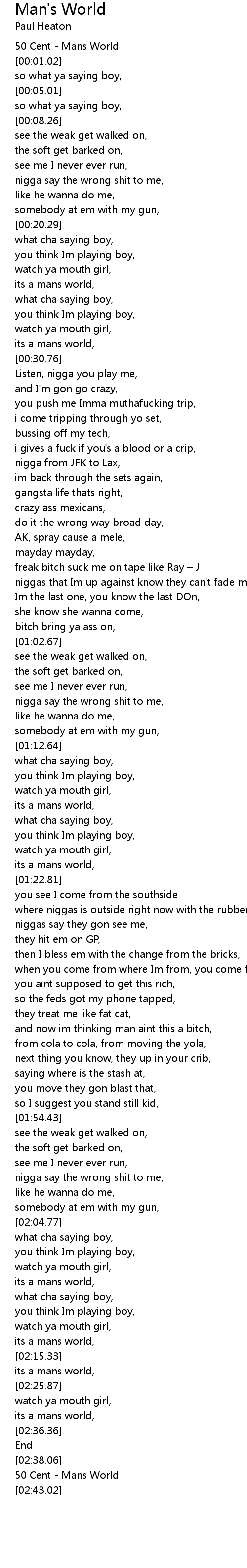 | [00:00.02] | 50 Cent - Mans World |