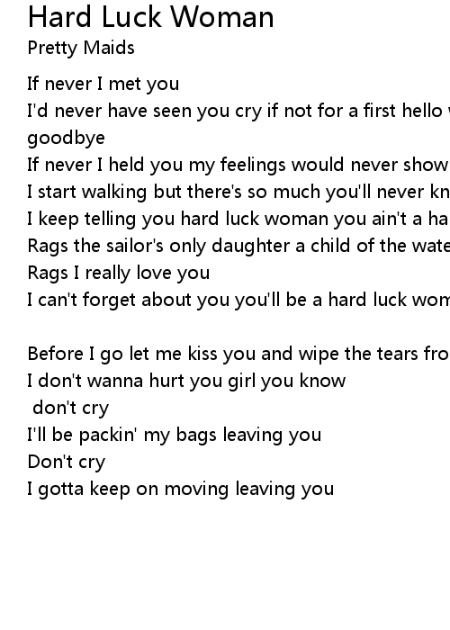 I keep telling you hard luck woman you ain't a hard luck woman |