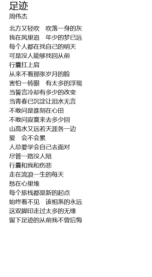 | 留下足迹的从前我不曾后悔 |