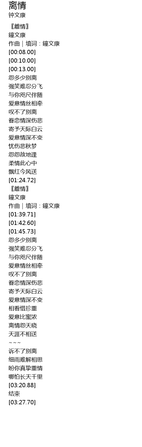 | [00:04.00] | 作曲|填词:鐘文康 |