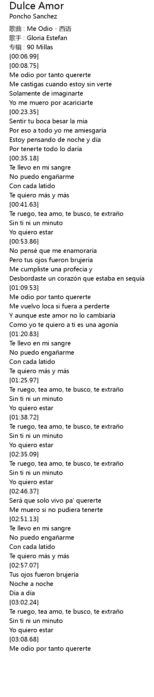 | [00:01.69] | 歌曲 : Me Odio - 西语 |