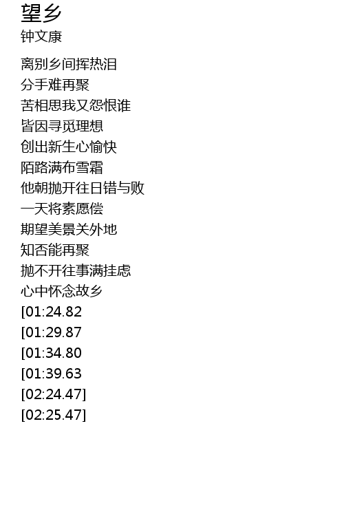 | [02:19.47][01:39.63] | 我家乡最难忘 |
