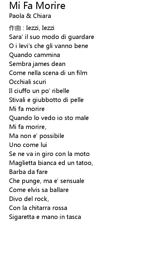 | 歌曲 | Mi Fa Morire |