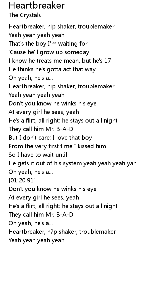 Heartbreaker, h?p shaker, troublemaker |