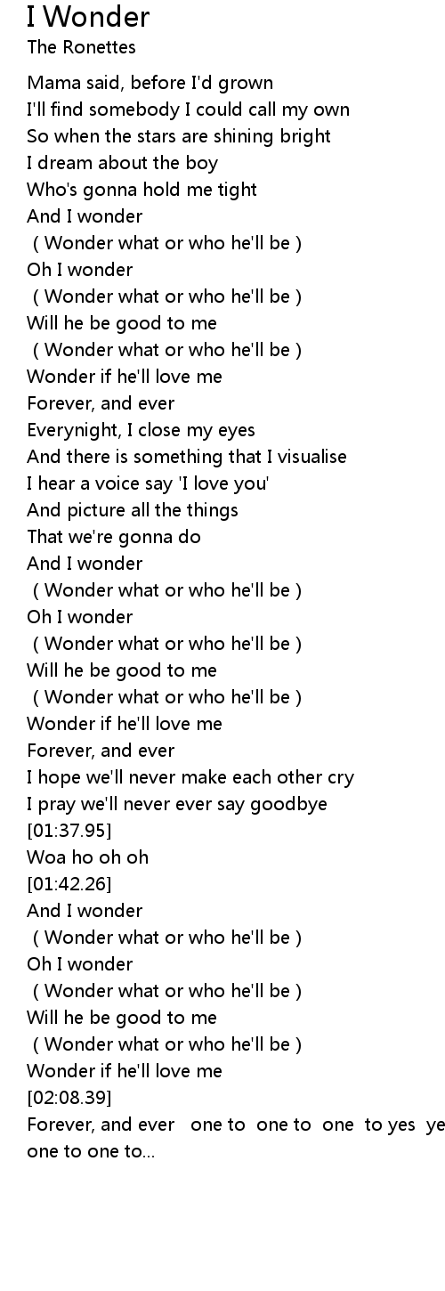 | [00:32.64] | Oh I wonder |